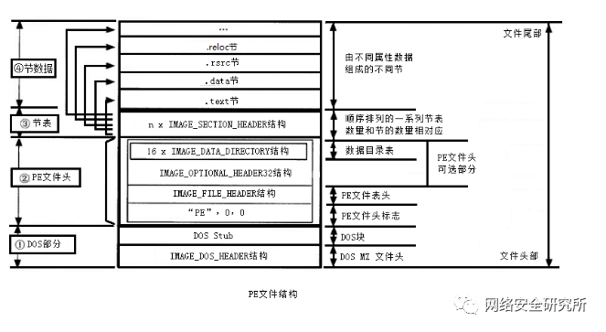下图为一个标准的PE文件结构。