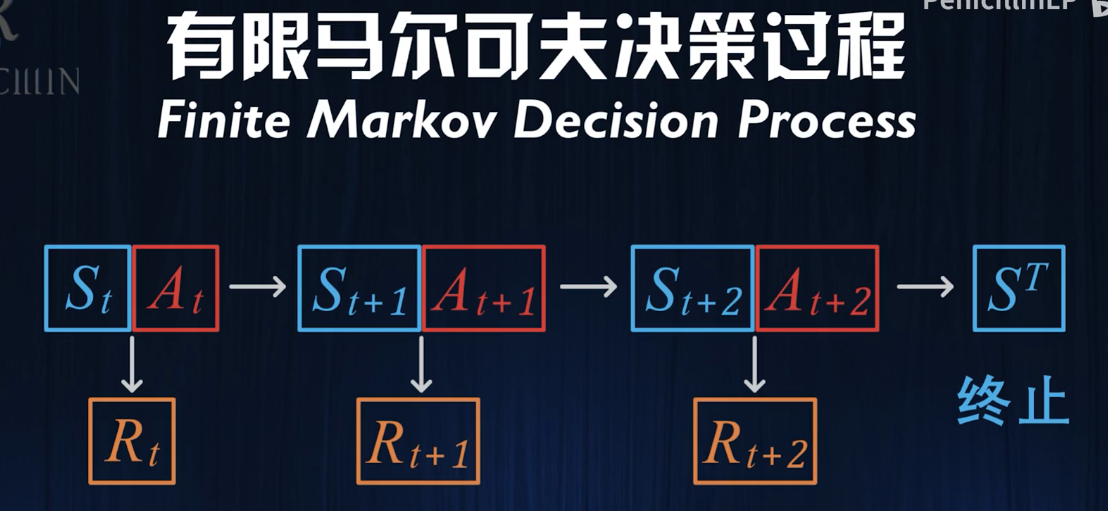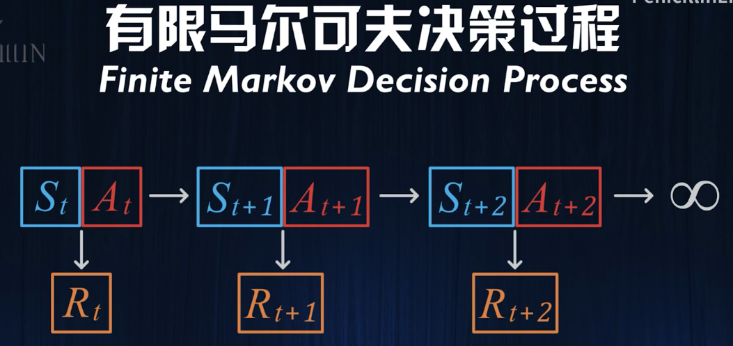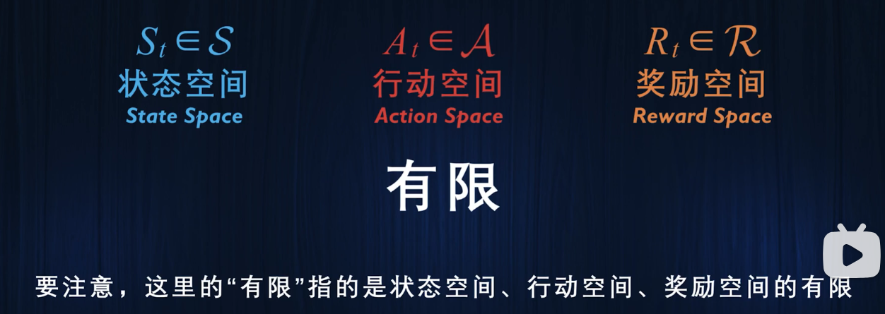 我们一般研究离散的马尔可夫过程,离散的马尔可夫是指状态、行动、奖励空间是有限的。