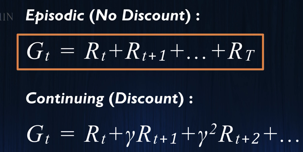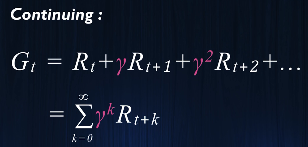强化学习的目标是使得奖励之和,也就是回报,最大化。而由于无限的马尔可夫奖励积分可能无穷,因此考虑增加一个折扣因子,这意味着,智能体会更关注当下的即时奖励。