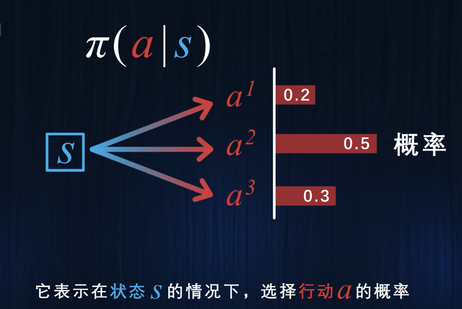 在一个状态下,智能体可能有不同的行动空间,因此有不同的概率选择不同的行动,因此我们映入行动概率函数Π,代表了在状态s下采取动作a的概率