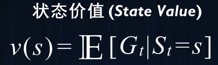 首先是状态价值,在处于状态S时,将来所能获得的奖励之和的期望值(状态价值):