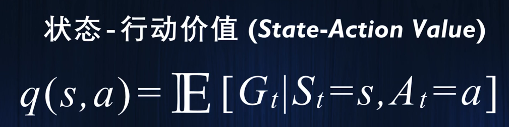 状态行动价值是处于S并采取a时,未来的获得的奖励之和(后果价值):