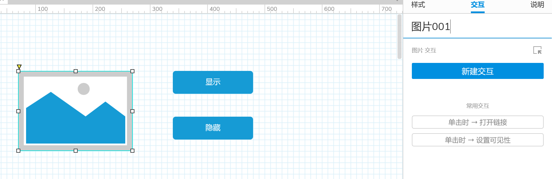 新建交互➡️单击时➡️显示/隐藏➡️图片001➡️选择显示