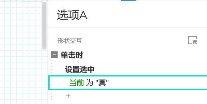 操作顺序:选择圆形选项A➡️在右侧面板中新建交互➡️单击时➡️设置选中➡️当前元件(值为真)➡️将该事件复制给另外两个圆形元件