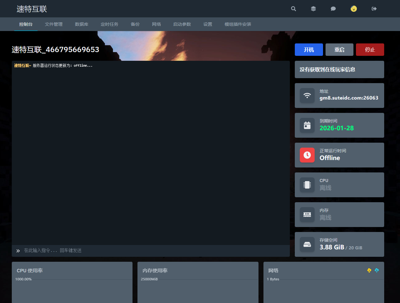 以我的服务器“速特互联”为例,首先进入服务器,关闭服务器