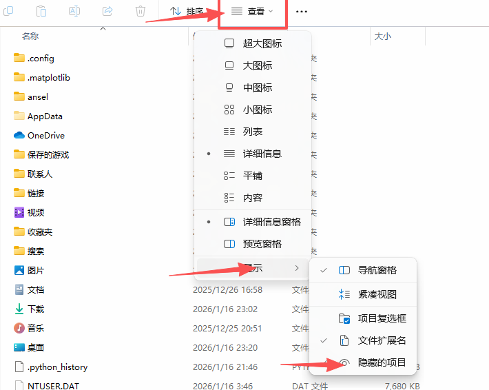 当然,到这一步你可能会问,楼主楼主为什么我没有AppData文件夹,因为AppDate是隐藏文件需要显示一下才能看见。