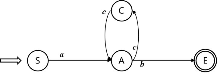 CurrentState = 'C'; // 接收到一个 'c' (总数为偶数),状态转移到 C