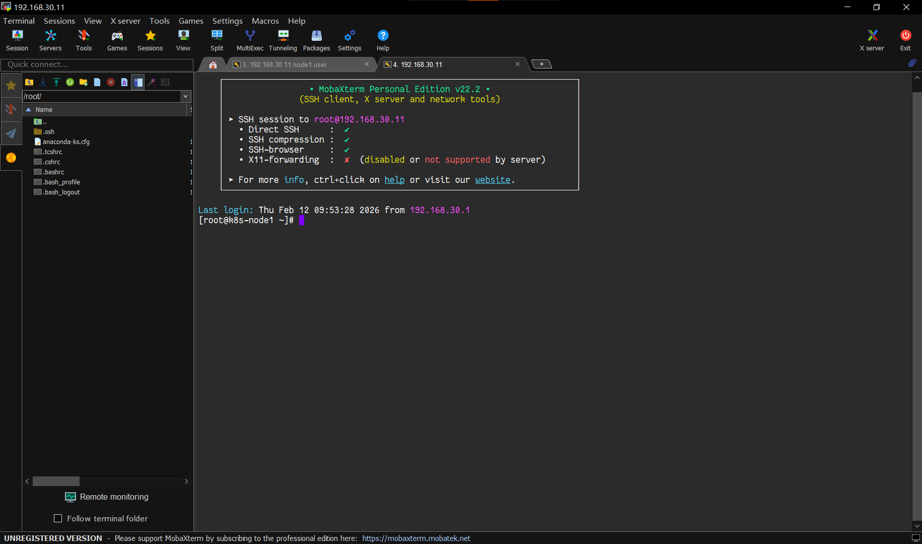 1.使用MobaXterm或其他终端软件连接到k8s_node1 ,便于接下来的操作