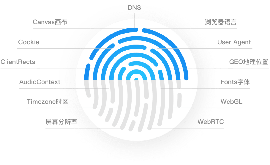 浏览器被网站访问时,会暴露上百个参数,包括但不限于:用户代理(UA)、屏幕分辨率、时区、语言、字体、Canvas渲染特征、WebGL指纹、音频上下文指纹、硬件信息等。这些信息组合起来,就像人的指纹一样具有唯一性,称之为浏览器指纹。