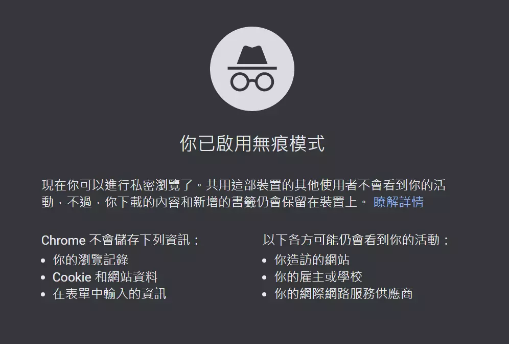 无痕模式不会隐藏或改变你的真实信息,真实IP地址、浏览器指纹、操作系统信息仍然会完整地暴露给访问的网站和网络服务提供商。