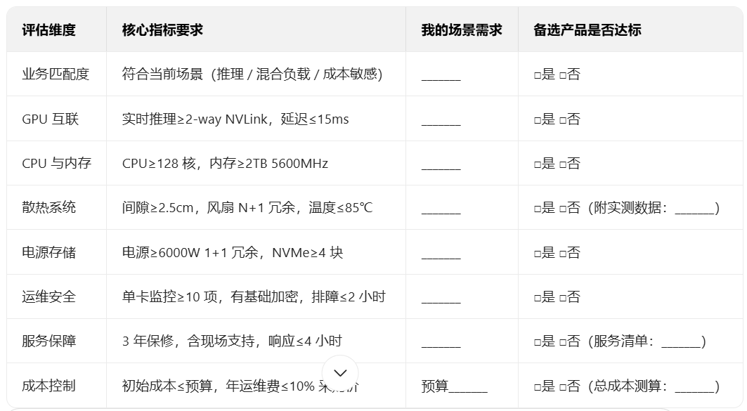 记住:选型的第一步不是看产品,而是画 "算力需求图"—— 把当前负载、3 年后的扩展需求、机房条件列清楚,再去找匹配的设备。