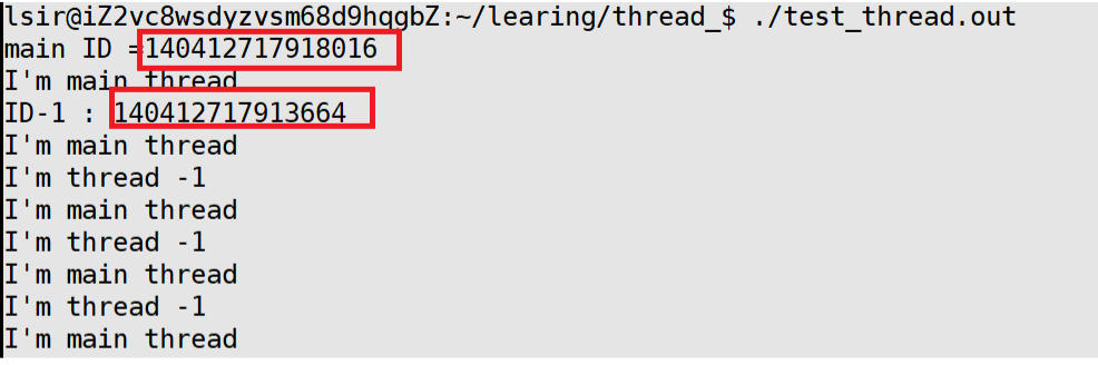 可以发现打印出了两个很大的数字,而且跟我们刚刚通过ps -aL查询到的:LWP标识符大小完全不一样,其实通过这个pthread_self函数获取到的ID并不是LWP提供的标识符,而是pthread库给每个线程维护的进程内唯一标识符,由于每个进程都有自己独立的空间,故而该标识符的作用域是进程内而非系统全局,这个标识符其实对应的是一个进程虚拟空间上的地址,通过这个地址可以找到该线程相关信息。