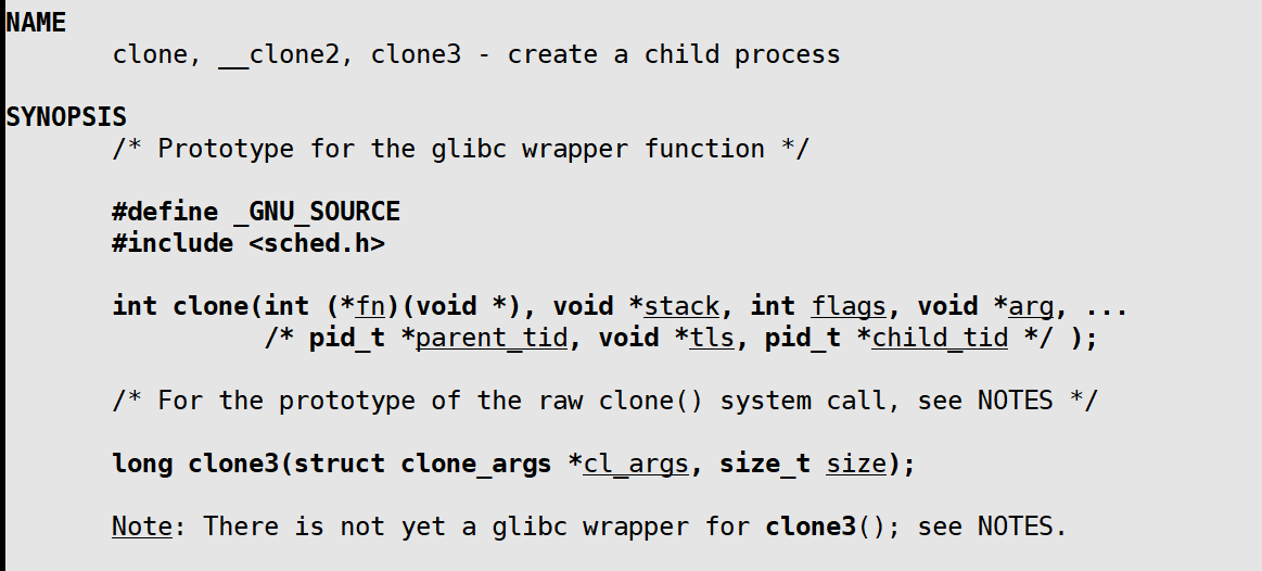 pthread 库调用pthread_create()创建线程时,底层会调用clone(),并传入核心参数: