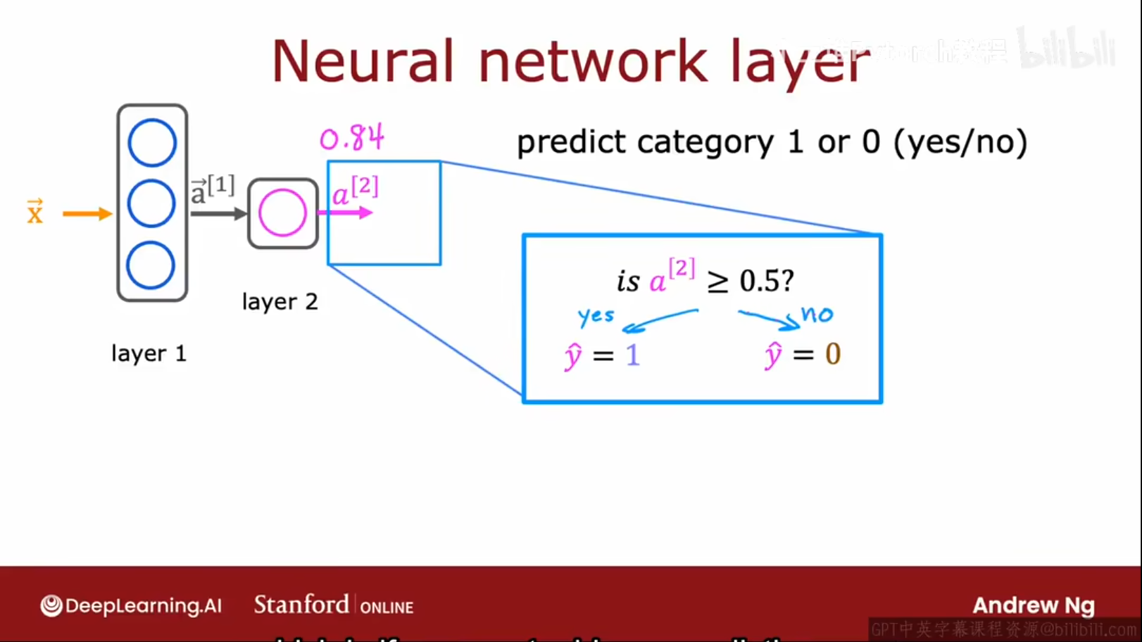 每一个神经单元就是实现了一个小小的逻辑回归单元,或者小小的逻辑回归函数,所以我们取第一个神经元为了表示这是第一个神经单元我们用W1,B1来表示这是第一个神经单元,同一层中的每个神经元的输出,组合成了一个向量,我们将这个向量作为输入,传入到第第二层中,以此类推,