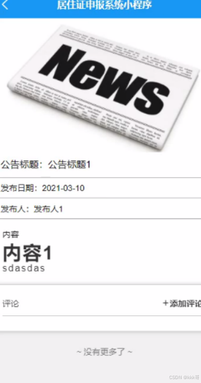 群众用户进入公告栏页面可以填写公告标题、封面图片、发布日期、发布人等信息,进行提交操作,如图5-4所示。