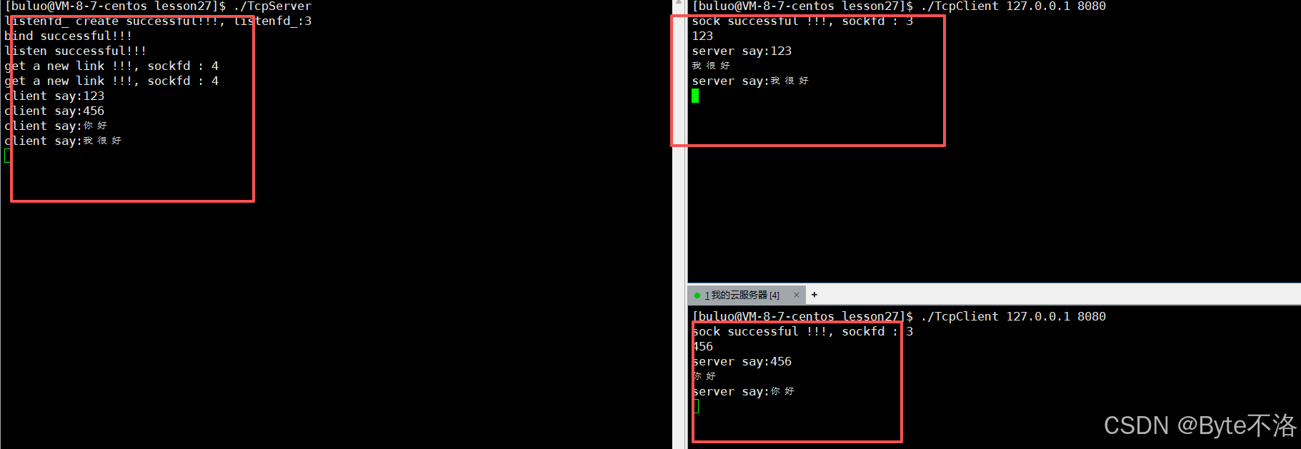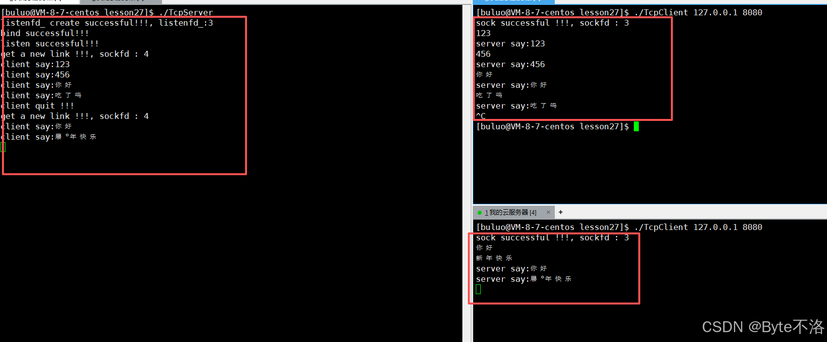 这就是为什么我们通过socket已经创建了一个listenfd_,为什么还要系统调用accept再创建一个sockfd,这就是因为listenfd_就是上面的张三,而sockfd就是上面的李四,王五等等服务员,我们的TCP是基于连接的协议,所以我们就需要像张三一样的人一直进行监听,一旦有人进行访问的时候,我们就需要再安排一个人进行服务,然后张三继续监听,等到又有新人来的时候,再安排一个人进行服务,这样我们的服务器就可以对每一个客户端保持连接,同时让所有的客户端都可以享受到服务器的服务。