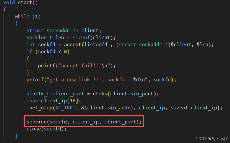 void service(int sockfd, std::string client_ip, uint16_t client_port)