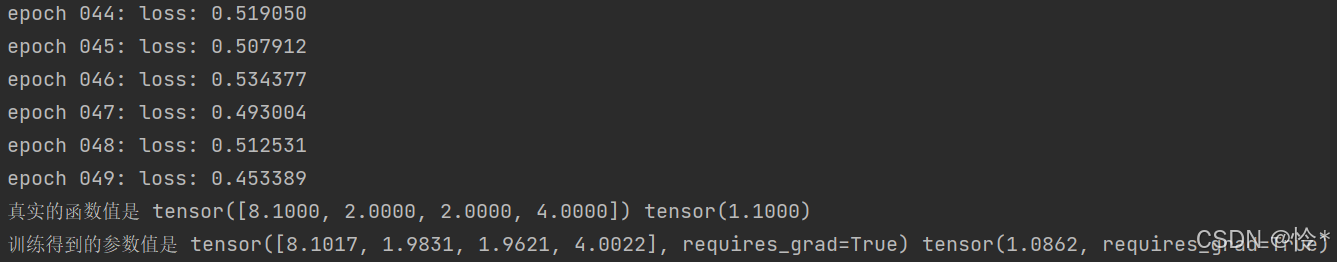 每个 epoch 结束后打印当前损失值。