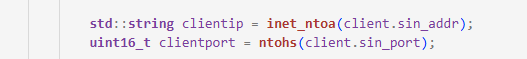 网络转成主机的字节序,并且32位数字的ip转换为点分十进制字符串形式。