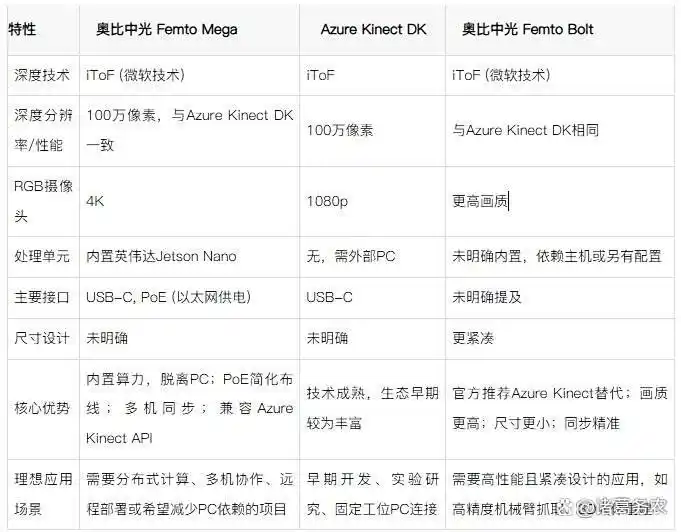 其出现也反映了3D视觉技术正朝着边缘化、智能化、模块化和生态化发展的趋势。对于寻求高性能且希望降低系统集成复杂度、或从Azure Kinect DK平台进行迁移的开发者来说,Femto Mega及其系列产品是一个值得考虑的选择。