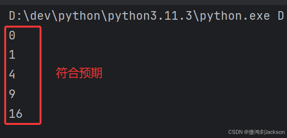 举例:当n=5,函数输出的结果应该是0, 1, 4, 9, 16