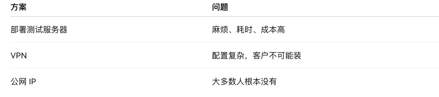功能已经在本地开发完成了,但前端同事、测试、客户都看不到效果。