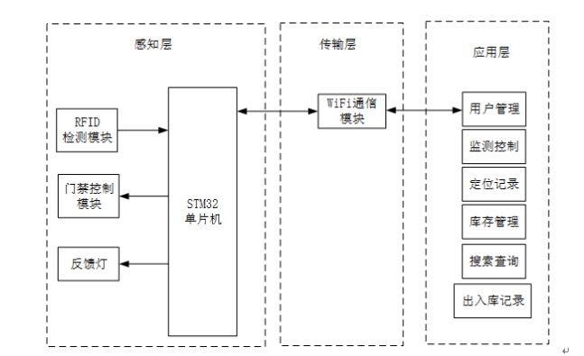 如图2-1系统设计框图,基于物联网的超市智能自助购物系统设计涵盖了系统架构、硬件与软件设计、功能实现、数据库及用户体验等方面。系统采用STM32单片机与WiFi模块相结合,通过小程序和Web管理中心进行互动,确保系统的实时数据传输和远程管理功能。管理员和用户通过不同角色界面与系统进行交互,确保了系统的实用性与灵活性。