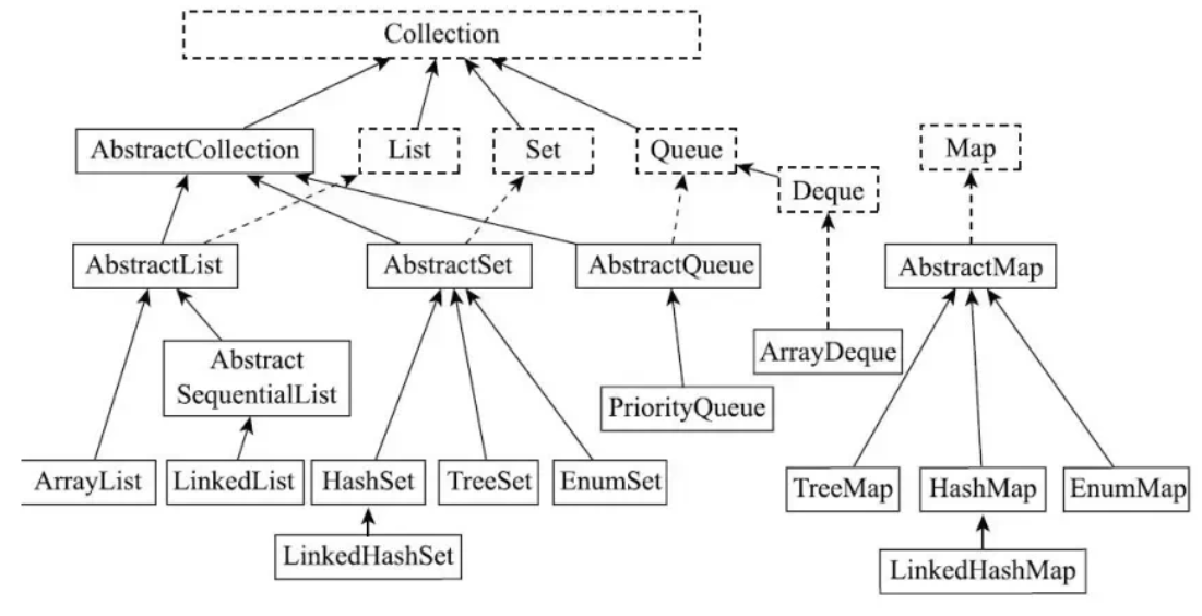 Java集合的核心是Collection和Map两大根接口,它们最本质的区别是Collection存的是单个元素,而Map存的是Key-Value形式的键值对。