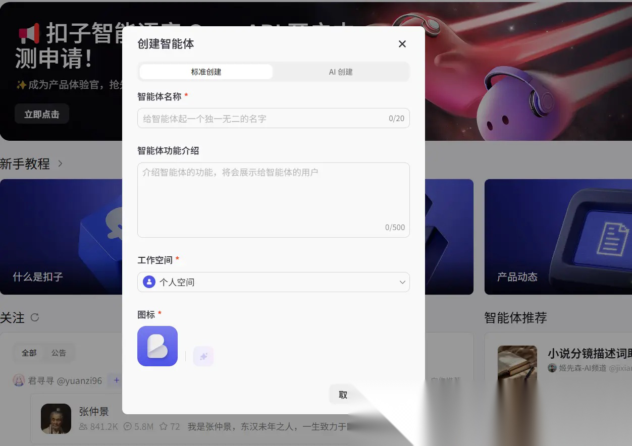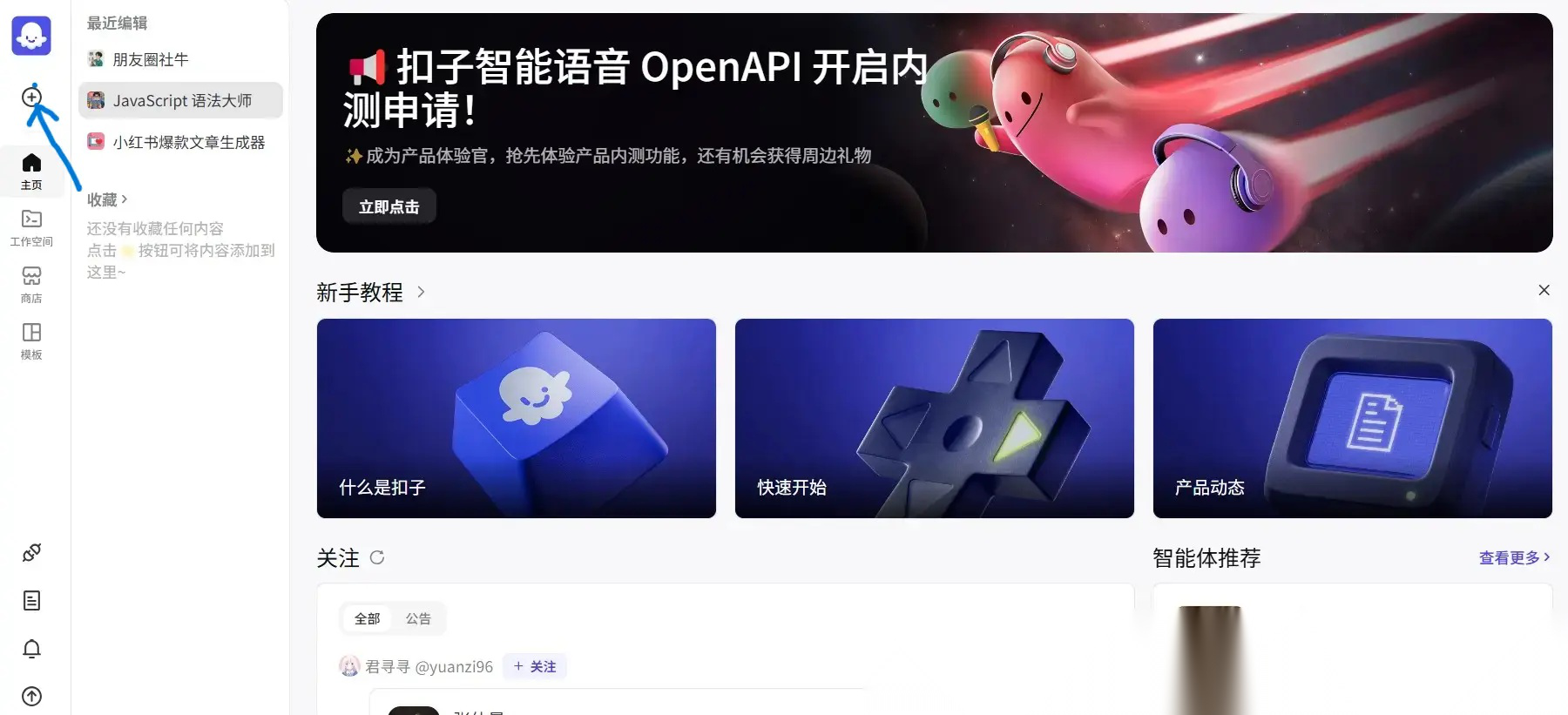 你可以通过调试扣子预置的 AI智能体快速体验扣子的功能,也可以根据入门教程或根据扣子助手从零搭建一个 AI 智能体。