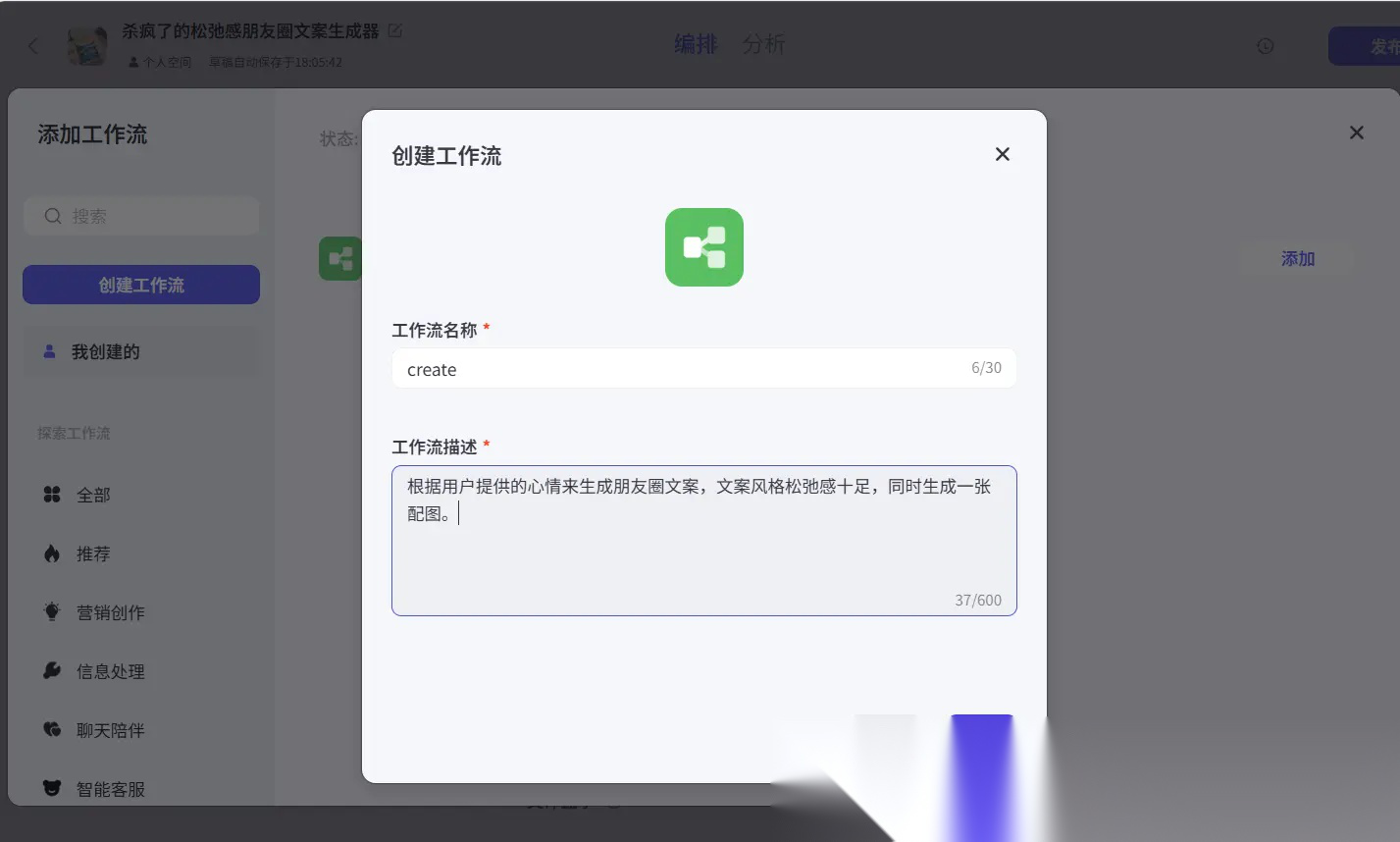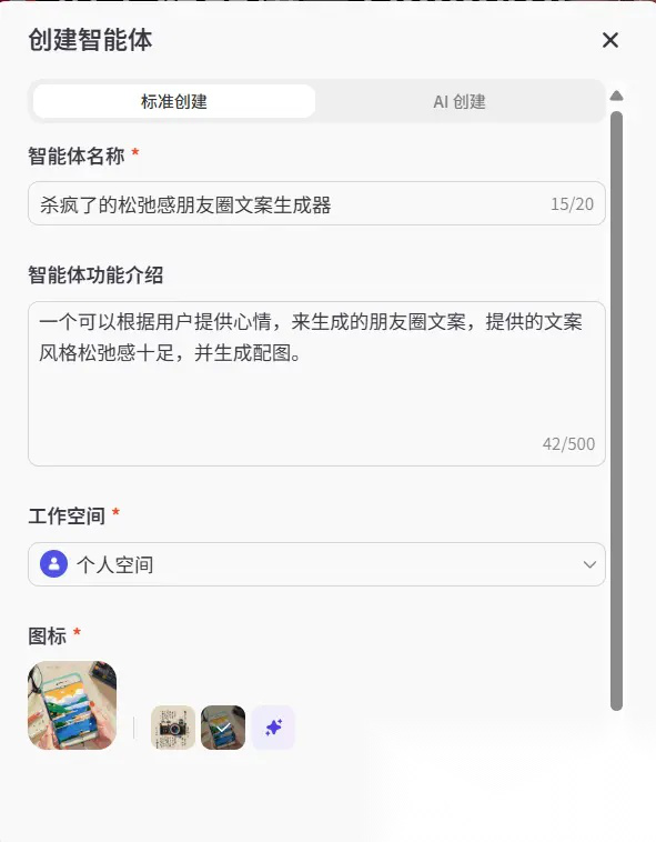 哈哈,简单生成一个朋友圈文案,大家也可以发挥自己的创意生成其他智能体。