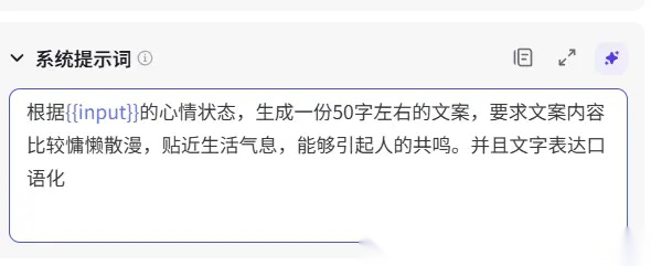 其中{{input}}就是应用输入的参数来在大模型中生成文案