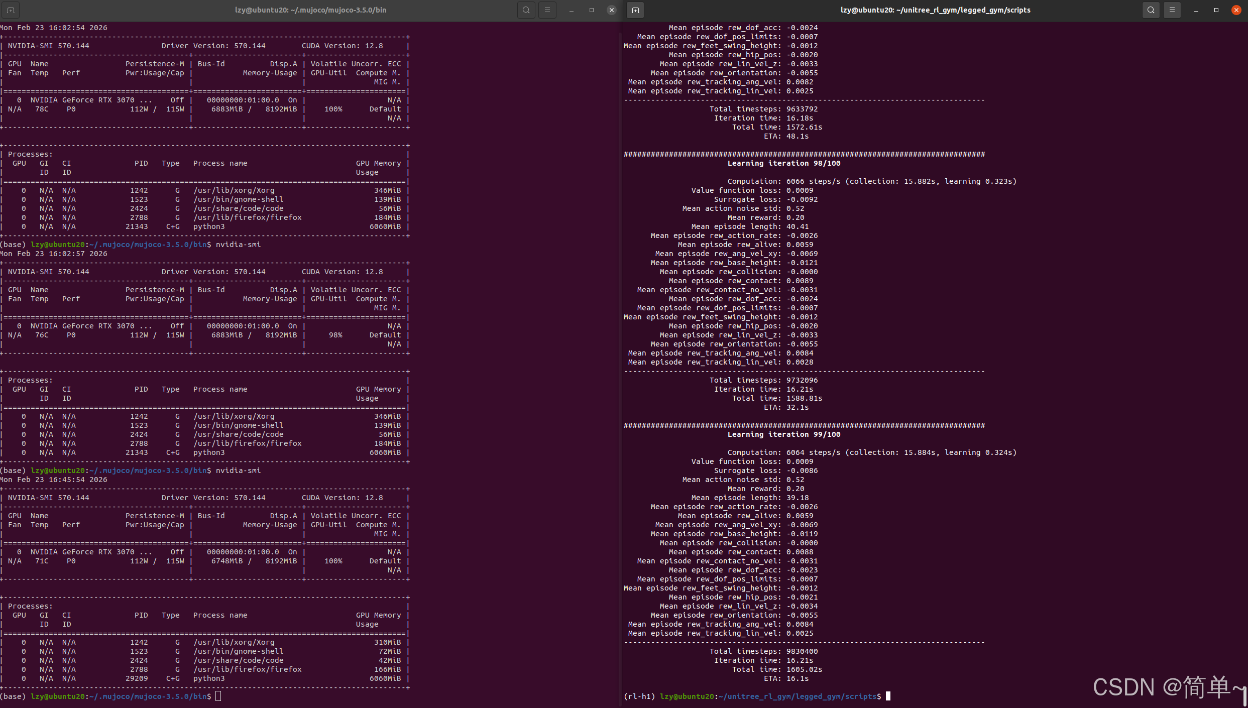 # 切换到 legged_gym/scripts 目录下,执行训练指令,开始训练。