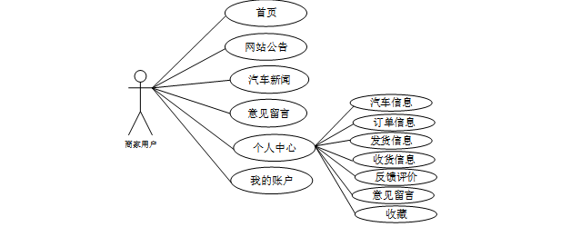 商家用户进入后台基于协同过滤的家庭汽车推荐系统的时候,可以看到首页、网站公告、汽车新闻、意见留言、我的账户、个人中心(个人首页、汽车信息、订单信息、发货信息、收货信息、反馈评价、意见留言、收藏)等功能。界面如下图4-8所示。