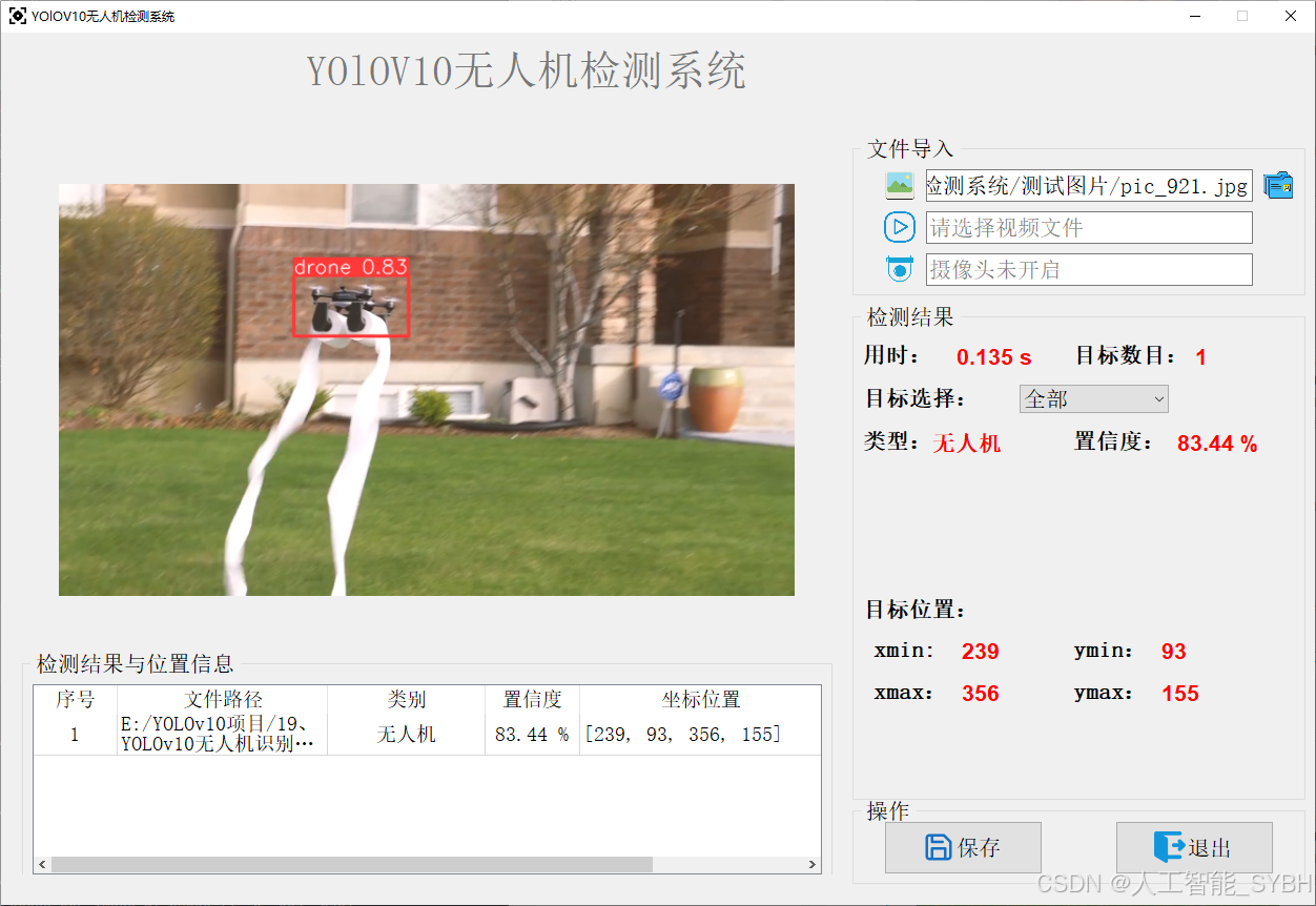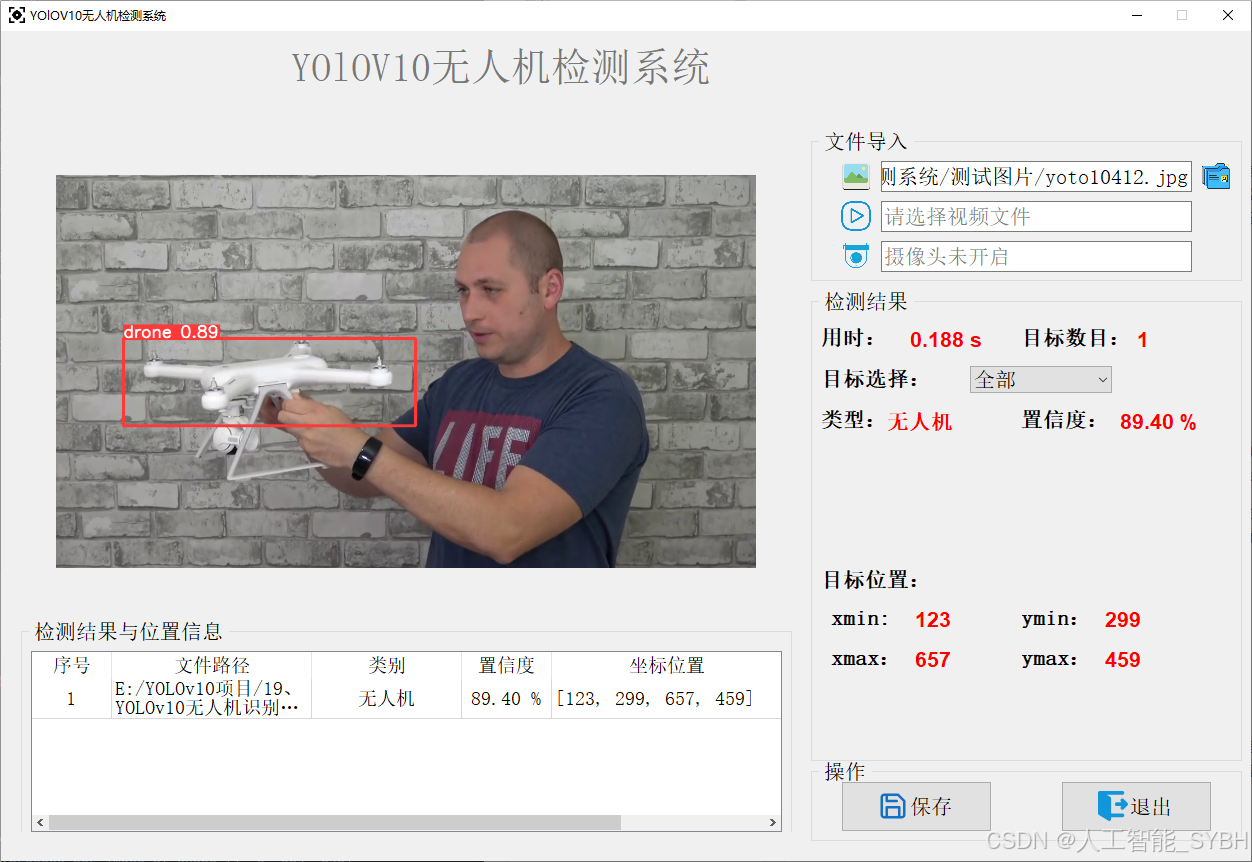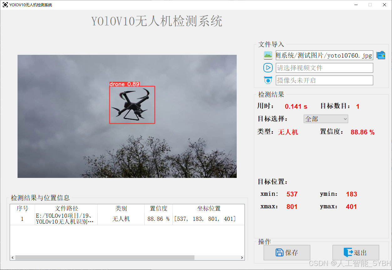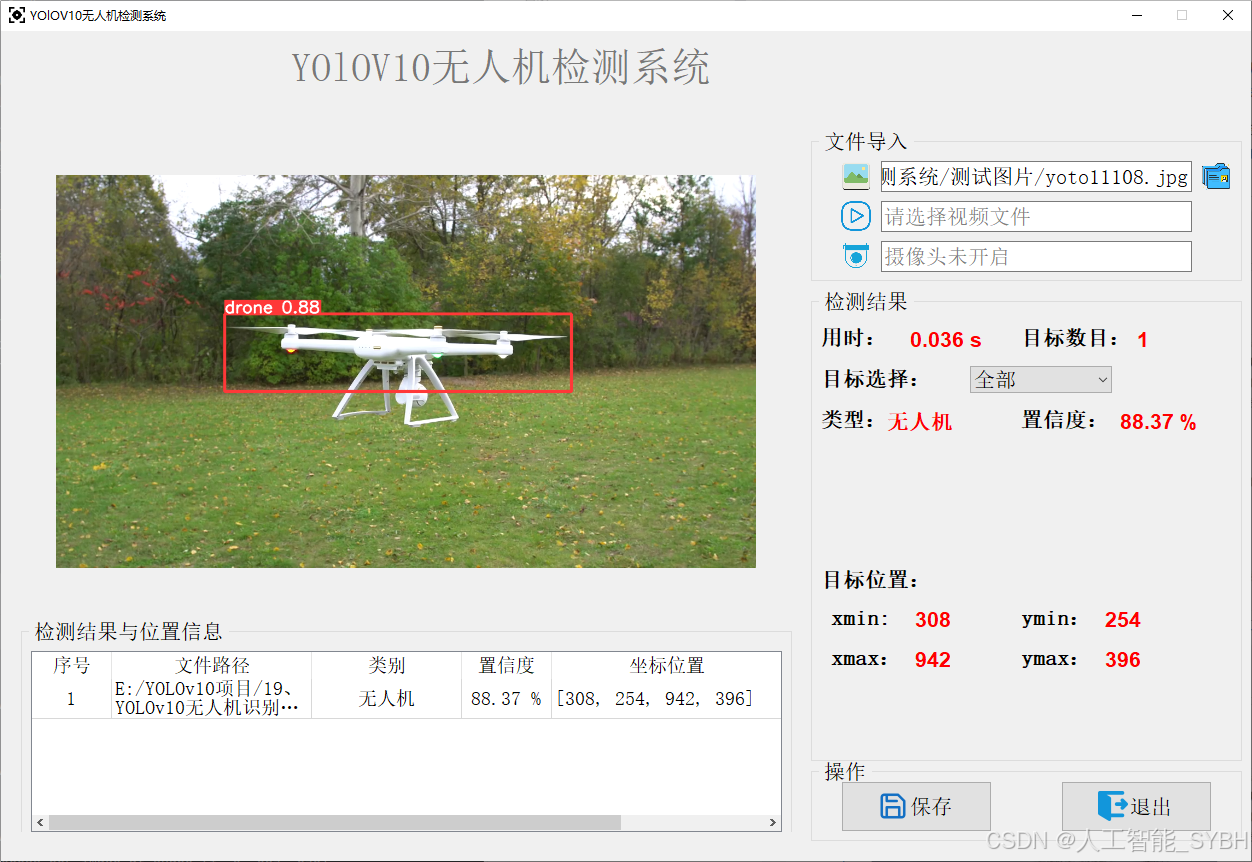 高精度检测: 基于YOLOv10目标检测算法,能够实现高精度的无人机检测。
