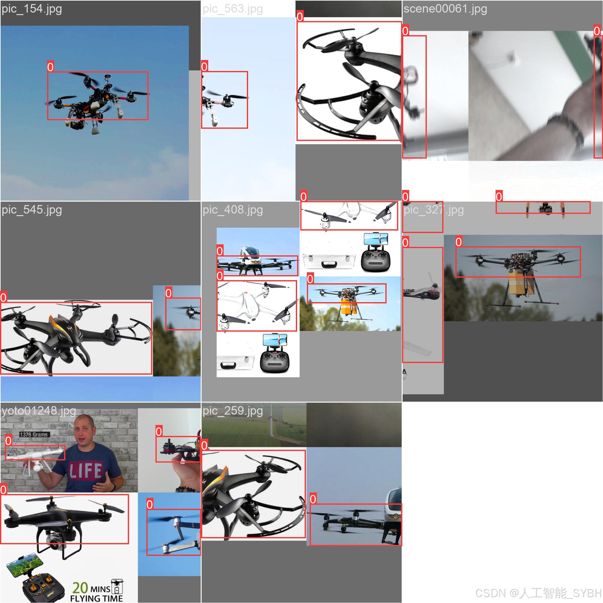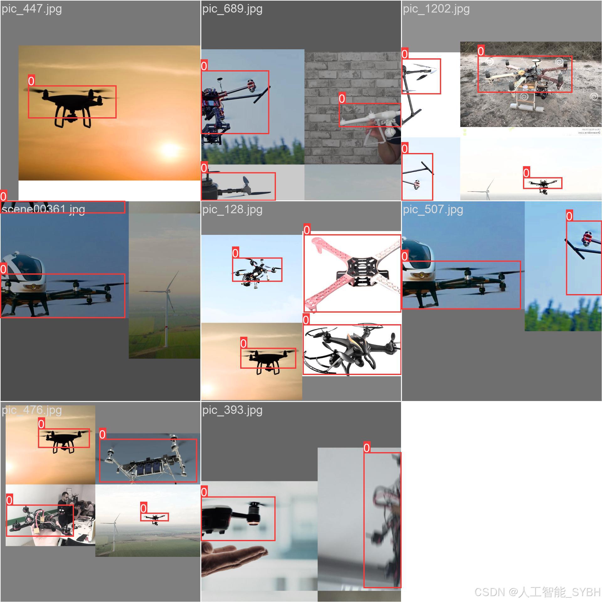 多样性: 数据集中的图像涵盖了不同光照条件(如白天、夜晚)、背景环境(如天空、城市、森林)、无人机的大小和姿态,确保模型能够适应各种实际场景。