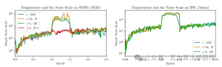 当学习率以一个常数因子衰减时,噪声尺度大致以相同的因子增长。因此,如果学习率太小,噪声尺度将被放大。