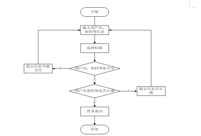 登录流程实现了管理员和其他用户的登录,在登录页面需要用户填写自己的信息,前端页面会将信息传递给后端接口,然后查询数据库确定该身份有效后登录成功,否则此用户登录失败,需要重新填写信息,进行再次验证,如图3-2所示。