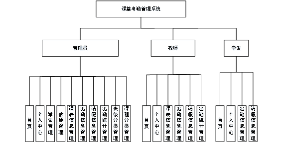 为了更好的去理清本系统整体思路,对该系统以结构图的形式表达出来,设计实现该课堂考勤管理系统的功能结构图如下所示:
