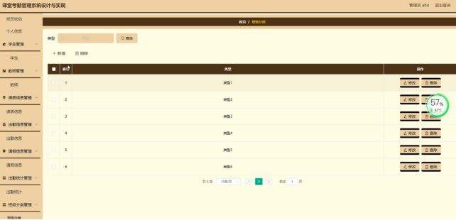 出勤信息管理:记录学生的出勤情况,包括课程名称、出勤时间、离开时间、缺勤类型等。