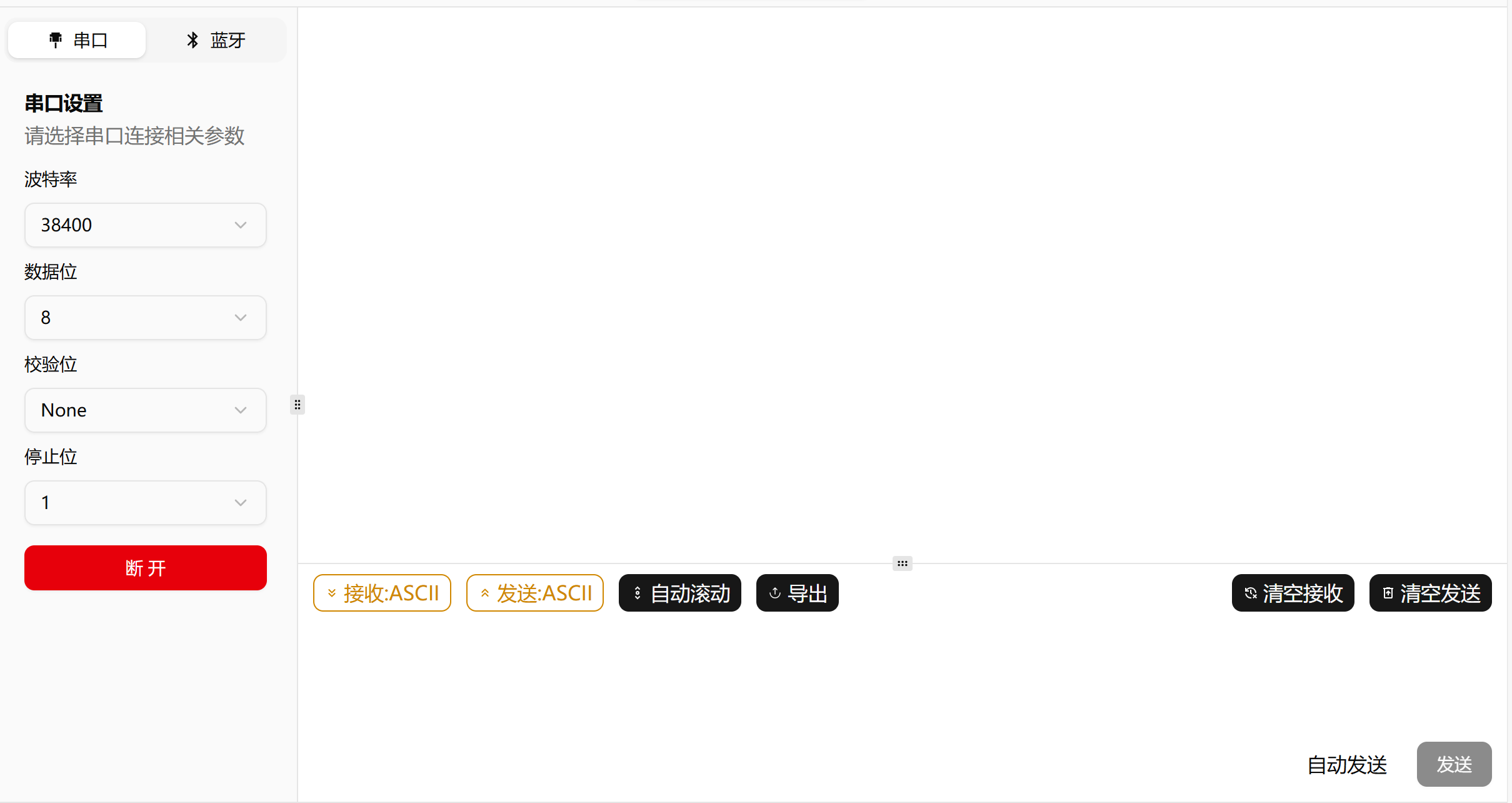 - 停止位/数据位:1位停止位,8位数据位,无校验。