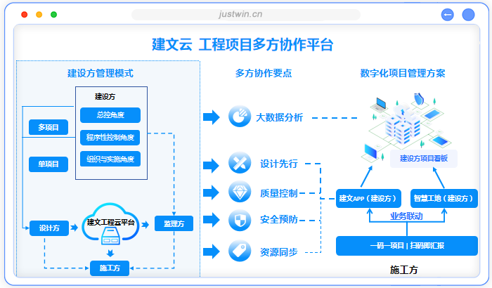 摘要:建文工程项目多方协作平台,是面向工程领域的全流程数字化协同管理工具,整合业主、施工、监理、设计、供应商、运维等所有参建方,实现项目从设计、采购、施工到竣工结算的全周期管理,平台为不同参建方打造专属工作台,适配各角色工作需求,支持电脑、手机、微信小程序等多端同步。
