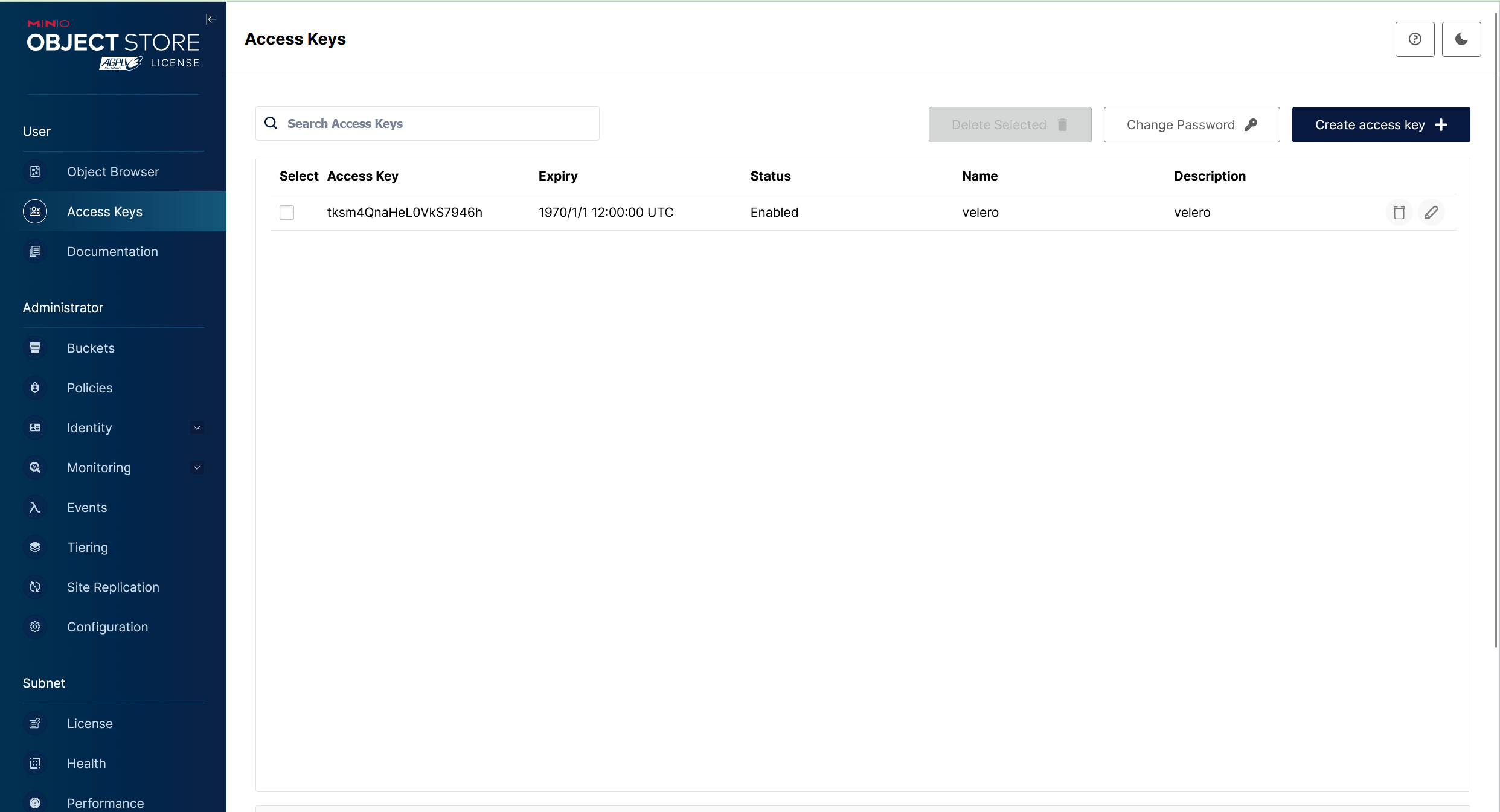在 MinIO 中创建好名为 velero 的存储桶。