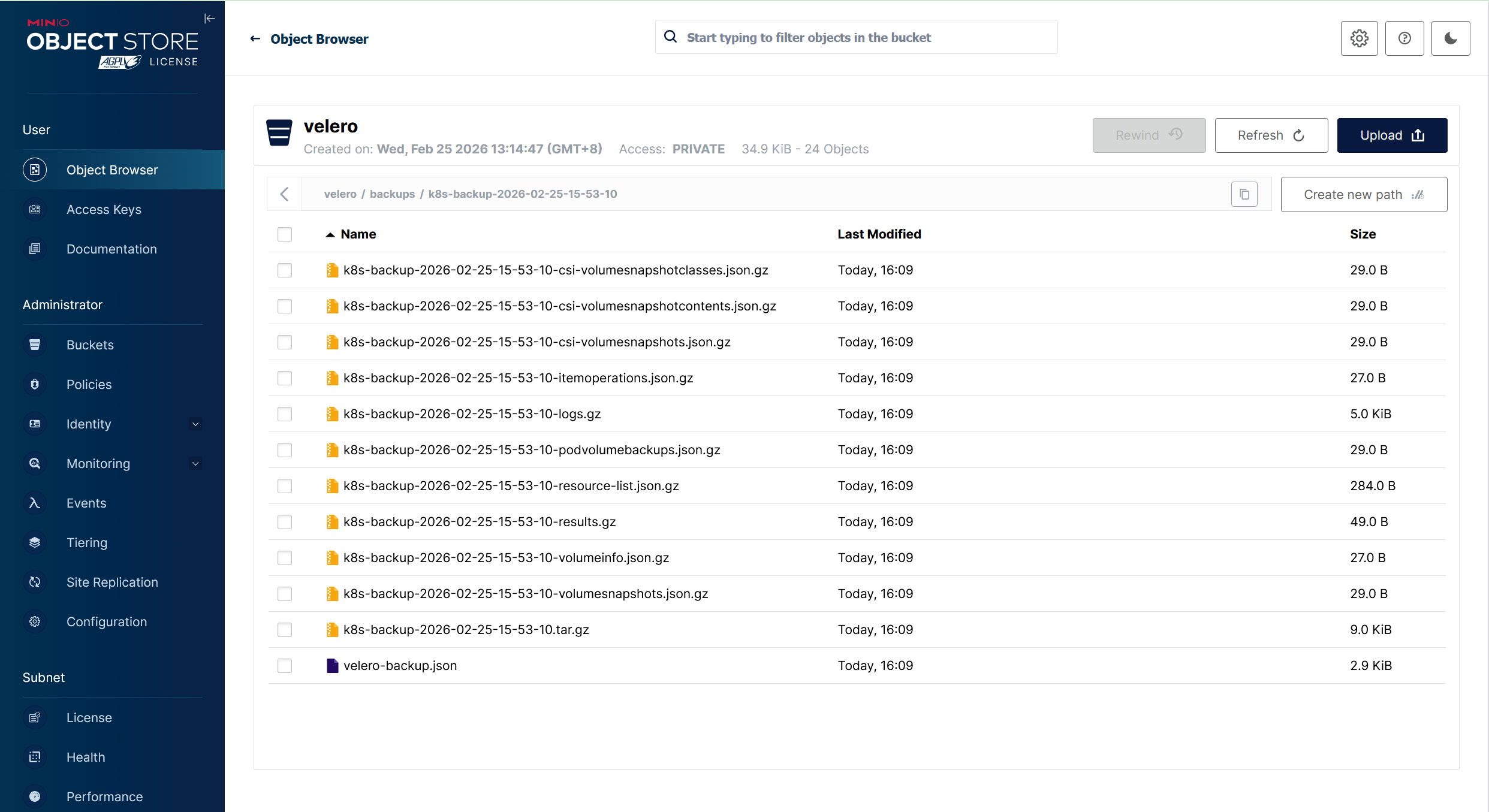 k8s-backup-2026-02-25-15-53-10 Completed 0 0 2026-02-25 16:09:30 +0800 CST 29d default <none>