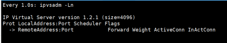 -> RemoteAddress:Port Forward Weight ActiveConn InActConn