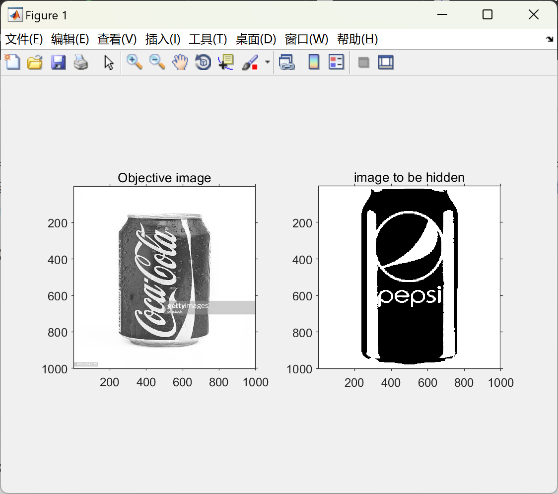 y=imresize(x,[1000, 1000]); % resizing hidden image z=im2bw(y); % converting rbg to binary