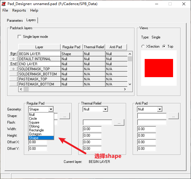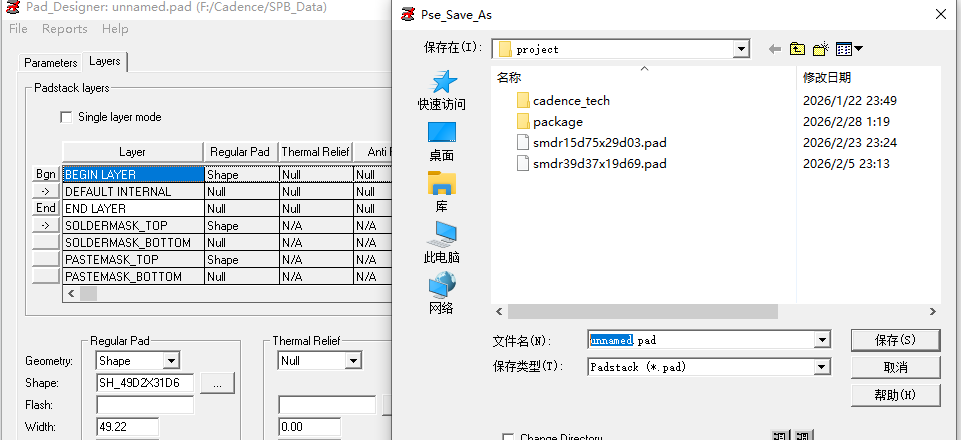 打开Pad_Designer,选择shape,检索刚刚保存的.dra文件(要保存在预设路径下才能找到)