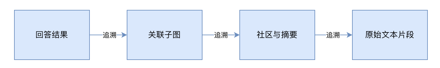 Microsoft GraphRAG 的核心可解释性通过一个清晰的 “三级追溯” 机制实现,使答案的生成过程完全透明: