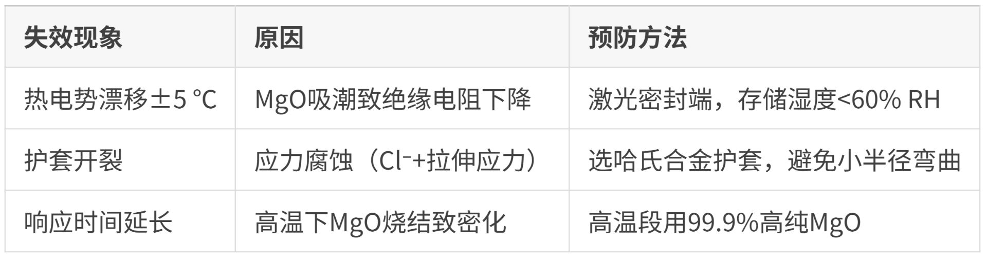 绝缘MgO的热电贡献:常温绝缘,但在>800 ℃时可能产生微弱热电势(<0.5 μV/℃),在700 ℃以上造成约±1 ℃附加误差;