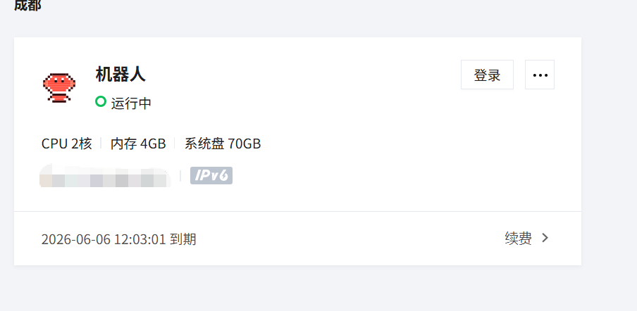 创建后进入实例详情页,可看到公网IP(记下来,后面要用)。