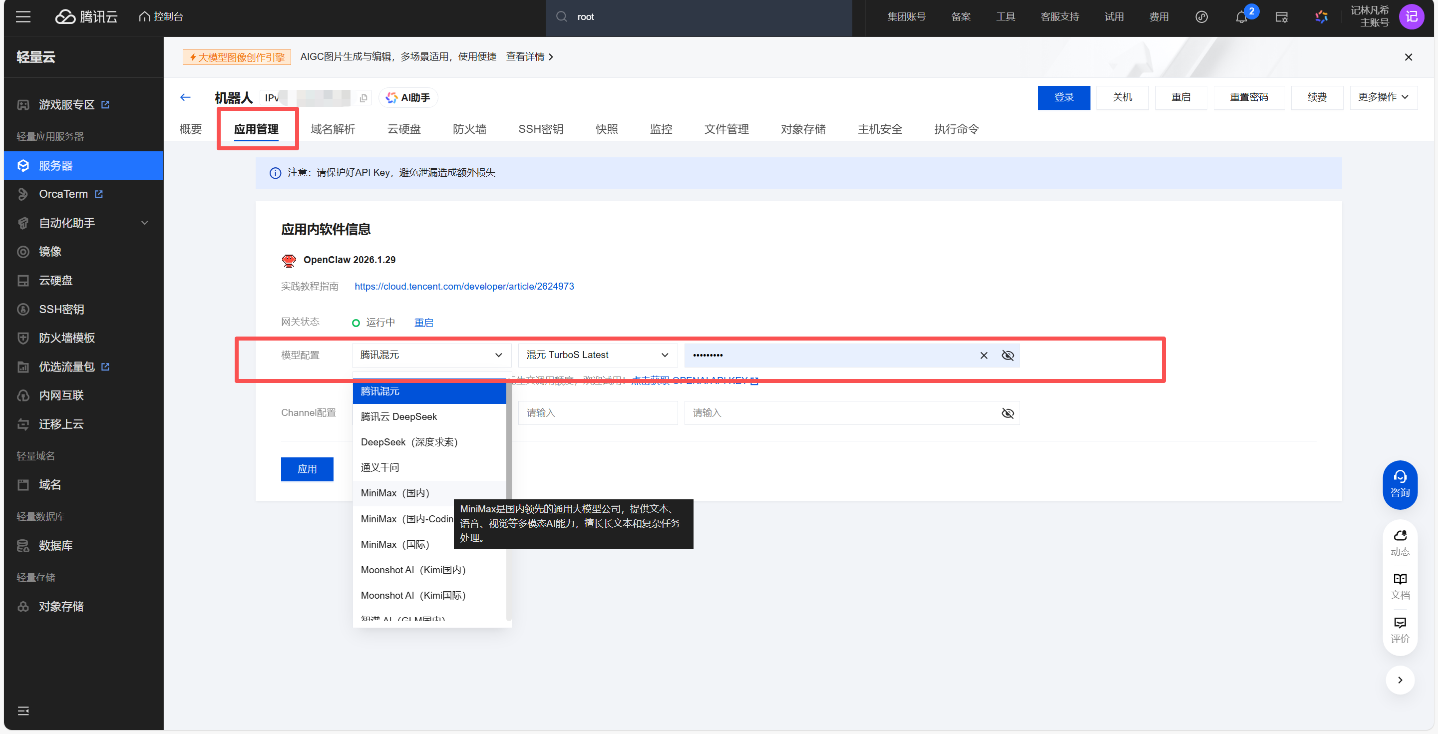 进入应用管理 & 选择/设置模型API Key(2–3分钟)